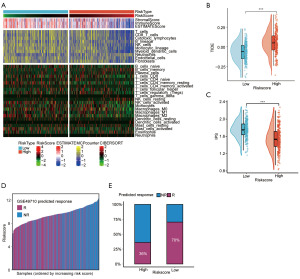 Immune infiltration and predicted immunotherapy response between high-risk and low-risk groups