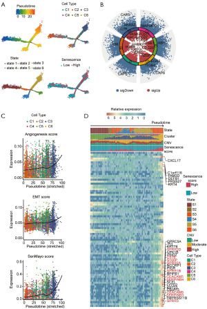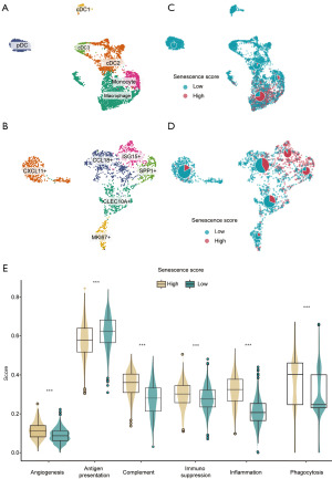 The array profiles are publicly available in GEO under accession number GSE132112. Raw expression data was downloaded from the GEO website and clinical data was downloaded via GEO query, replacing gene names in tinyarray (version 2.3.2). The list of senescence genes was downloaded from the study support material by Saul et al. (12). Epithelial-mesenchymal transition (EMT) and angiogenesis-related gene sets in epithelial cells were sourced from the supplementary material of the study by Sun et al. (13) (see table online https://cdn.amegroups.cn/static/public/tcr-2025-659-4.xlsx). The hallmark functional traits of macrophages, including their roles in antigen processing and presentation, inflammation, angiogenesis, immune suppression, phagocytosis, and complement-related gene activity, were sourced from the supplementary materials provided in the research conducted by Wu et al. (14) (see table online https://cdn.amegroups.cn/static/public/tcr-2025-659-4.xlsx).
