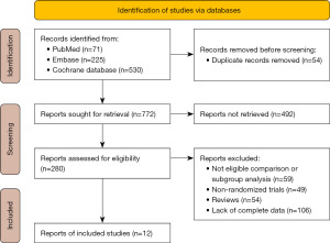 The literature search identified 826 records, of which 12 RCTs involving 6,691 patients met the eligibility criteria (Figure 1, Table 1). Key characteristics of the included trials are summarized in Table 1 (15,17,18,20-28). The analysis encompassed diverse immunotherapy-CT combinations, including Ate with nP, CT, or bevacizumab (Bev), and Pem with CT or paraplatin (P). Patient cohorts varied across trials, with sample sizes ranging from 104 to 2,244 per treatment arm.