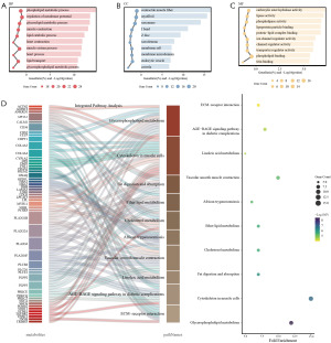 To further elucidate the potential biological mechanisms of LPRGs, we performed functional enrichment analyses, including GO, KEGG, and GSEA. GO analysis revealed that the DEGs were significantly enriched in various biological processes, including the regulation of phospholipid metabolic process, regulation of membrane potential, and glycerolipid metabolic process. For cellular components, significant terms included membrane microdomain, endocytic vesicle, and caveola. Molecular functions were primarily enriched in carboxylic ester hydrolase activity, lipase activity, and ion channel regulator activity (Figure 3A-3C). As shown in Figure 3D, KEGG pathway analysis indicated that these DEGs were predominantly involved in several key pathways, including glycerophospholipid metabolism, the AGE-RAGE signaling pathway in diabetic complications, and ECM-receptor interaction. These alterations in biological functions are associated with tumor invasion, metastasis, and remodeling of the TME, which are recognized pathological features of LUAD progression.