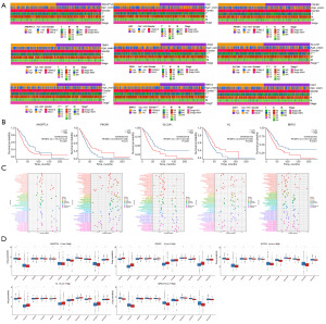Clinical correlation analysis of 9 crucial genes was conducted, and results were visualized via the “ComplexHeatmap” package of R to identify metastasis-related genes. Subsequently, a Kaplan-Meier survival analysis was conducted to identify genes related to prognosis among those associated with metastasis.