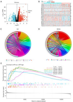 The relationships between the “API low + EPI high” and “others” groups were explored via differential analysis via the “limma” package of R. Subsequently, gene set enrichment analysis (GSEA) was performed via the “clusterProfiler” package in R, with a focus on nominal P<0.05 and false discovery rate (FDR) <0.25. Functional annotation of DEGs was performed through Gene Ontology (GO) and Kyoto Encyclopedia of Genes and Genomes (KEGG) pathway enrichment analyses.