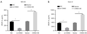 Effects of CNN3 on VEGF-A expression in osteosarcoma cell culture medium