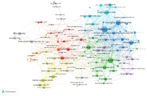 Overall, the network structure indicates that institutions within China play a dominant role in this field, characterized by strong collaboration among themselves. From a global perspective, the University of Texas MD Anderson Cancer Center in the USA appears as an external collaborator, making notable contributions to the field, however, it is relatively isolated in the network compared with Chinese institutions, with fewer co-authorship ties linking it to the main clusters. This collaboration map highlights the global significance of Chinese research and the interconnectedness of its major academic institutions.