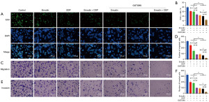 EMT is associated with cancer progression, including recurrence, invasion, and migration (16,17). Particularly noteworthy is its close relationship with drug resistance, which can potentially be overcome by targeted therapies specific to EMT (18). Debaugnies et al. (19) found that knockdown of RHOJ, a small GTPase preferentially expressed in EMT cancer cells, reversed the EMT phenotype and restored chemosensitivity in a squamous cell carcinoma model. Meanwhile, Kantapan et al. (20) ascertained that pentagalloylglucose enhances the efficacy of the chemotherapy drug doxorubicin by impeding the process of EMT, thus facilitating the treatment of triple-negative breast cancer. All these studies suggest that the targeted inhibition or blockade of EMT is a key strategy to mitigate drug resistance.