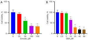 Inhibitory effects of different concentrations of emodin and cisplatin on HepG2 cell activity