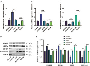 Aberrant histone methylation, as a hallmark of epigenetic dysregulation in HGSOC, has been identified as a critical driver of tumor progression and enhanced invasiveness (15-17). The KDM6B catalyzes the demethylation of H3K27me3, thereby relieving transcriptional repression of downstream target genes. Downregulation of KDM6B leads to abnormal accumulation of H3K27me3 in various ovarian cancer tissues, which is strongly associated with dedifferentiation, increased migration, and enhanced invasiveness of tumor cells. Notably, suppression of KDM6B activity lowers the expression of the tumor suppressor C/EBPα (18,19). C/EBPα maintains cellular differentiation and restrains cell cycle progression, antagonizing the cell cycle-related protein CCND1, and thereby linking differentiation and proliferation control (20,21).