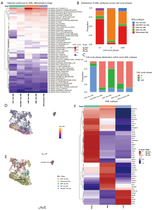Identification of AML tumor subpopulations exhibiting heterogeneous differentiation features based on scRNA-seq data