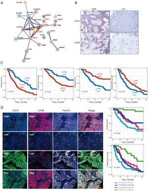 Researches indicate that lactate is not only a metabolic waste product but also the most essential direct source of nourishment for tumor cells (39,40). Meanwhile, low-glucose (high lactate) and hypoxic conditions are unsuitable for effector T-cell survival and function, resulting in the decline of antitumor immunity (41-43). Kumagai et al. proposed that lactate can upregulate PD-1 expression to mediate the function of regulatory T cells (41). Other studies have reported that the expression and activity of LDHA are elevated in a variety of malignancies and are associated with a worse event-free survival rate or resistance to chemotherapy (40,44-46). Zhao et al. found that LDHA promoted tumor metastasis in patients with renal cell carcinoma by facilitating epithelial-mesenchymal transition (47). This is in line with our results, which identified LDHA as a possible oncogene. Deng et al. demonstrated that the inhibition of LDHB dramatically reduces the survival of tumor-initiating cells in non-small cell lung cancer, while Frank et al. observed that restoring LDHB expression potentiates the inhibitory effects of simvastatin on tumor cell proliferation (48,49). Meanwhile, in the study by Liu et al., the overexpression of LDHA and LDHB promoted the malignant transformation of GES-1 cells (a gastric epithelial cell line) by enhancing the Warburg effect during long-term exposure to N-nitroso compounds (50). These findings conflict with our own, and it may be that the function of LDHB varies according to the type of tumor. Further fundamental experiments are needed to generate firmer evidence related to LDHB’s role in cancer.