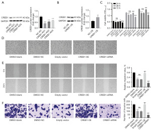 To confirm the critical role of CREB1 in the inhibition of HepG2 cells by the combination treatment of QUE and DON, CREB1 was either knocked down or overexpressed, and the effects of dual-drug treatment on HepG2 cells were observed. The efficacy of siRNA or overexpression plasmid transfection in HepG2 cells was verified by WB assays (Figure 6A,6B). CCK-8 assays performed at 24, 48, and 72 hours demonstrated that the combination treatment significantly suppressed cell viability compared to the blank control. This suppression was reversed by CREB1 overexpression and further potentiated by CREB1 knockdown at all time points (Figure 6C). The cytomorphological analysis revealed a notable reduction in cell density, decreased intercellular connectivity, and the presence of rounded dead cells scattered throughout the dual-drug group, compared to the blank group. However, overexpression of CREB1 reversed this phenomenon, while CREB1 knockdown further aggravated it (Figure 6D). Furthermore, the anti-migratory and anti-invasive effects of the combination treatment, as assessed by scratch wound healing and Transwell assays, were also dependent on CREB1 expression levels. CREB1 overexpression attenuated, while its knockdown enhanced, the inhibition of migration and invasion (Figure 6E,6F). In brief, CREB1 mediates the effects of the combination treatment of DON and QUE on the proliferation, migration, and invasion of HepG2 cells.