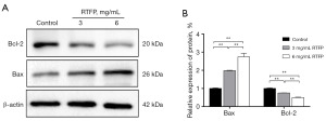 Data are presented as mean ± SD. **, P<0.01 vs. control group. RTFP, Rosa roxburghii Tratt fruit polysaccharides; SD, standard deviation.