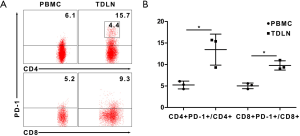 PD-1 expression of the T cells in TDLN and PBMC