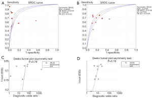 Deeks funnel plot tests did not show publication bias for hysteroscopic examination and transvaginal ultrasonography (P>0.05, Figure 3).