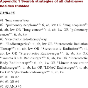 The electronic databases searched included PubMed, The Cochrane Library, EMBASE and the Chinese Biomedical Literature Database from their inception to March 14, 2018. All searches used a combination of advanced retrieval and topic retrieval. References of relevant studies were hand-searched to identify additional relevant publications. The search strategy for PubMed is shown in Box 1, and the search strategies for other databases can be found in Appendix 1.
