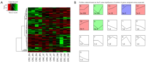 The specific tissue expression profiles were determined by STEM analysis. The values of lncRNA expression of tumor tissue were represented as log ratios relative to the expression of normal tissue. Then the approach selects a set of predetermined temporal model profiles and determines the statistical significance of the number of genes assigned to each profile compared to the number of genes expected based on chance.