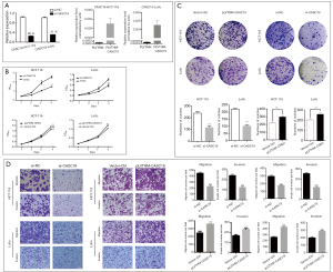 Knockdown and overexpression of CASC19 influence proliferation, migration and invasion in vitro