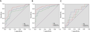 | Area under the curve | 0.727 | 0.694 | 0.821 |