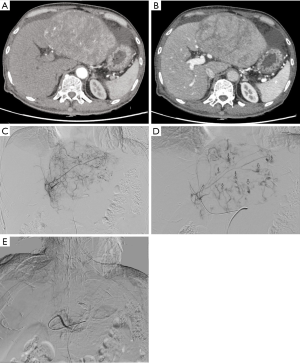 After admission, the patient underwent routine plain and contrast-enhanced abdominal CT scans and routine electrocardiography (ECG). Blood biochemical tests were performed for blood cell counts, liver and kidney functions, bleeding and clotting time, hepatitis B virus DNA, tumor marker, and other indicators. Meanwhile, hepatoprotective symptomatic treatments and anti-hepatitis B virus therapy were provided as appropriate. After the examination results became available, the liver function was assessed according to Child–Pugh classification and the clinical staging was performed based on the BCLC guidelines. All patients and/or their families signed an informed consent form and a sheet of implantable medical materials before the procedure.