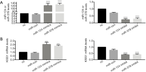 Overexpression of miR-124-3p and miR-378-3p decreased the invasion and migration abilities of SW-480 cells. Overexpression of miR-124-3p and miR-378-3p significantly inhibited the migration and invasion of SW-480 cells, and inhibition of miR-124-3p and miR-378-3p significantly attenuated this effect (Figure 3B).