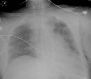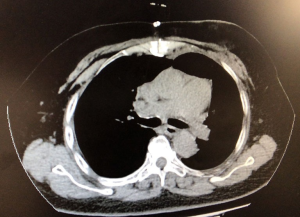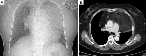 Liposarcoma arising from the mediastinum is uncommon (1). Mediastinal liposarcoma is not sensitive to radiotherapy and chemotherapy, hence complete resection is required (2). With the rapid growth and large volume of the tumor, reexpansion pulmonary edema is prone to occur after the tumor removal, but there are few reports about reexpansion pulmonary edema after mediastinal liposarcoma resection. We here present a patient who underwent resection of the giant anterior mediastinal liposarcoma via a median sternal incision and postoperative reexpansion pulmonary edema. We present the following case in accordance with the CARE reporting checklist (available at http://dx.doi.org/10.21037/tcr-20-1270).