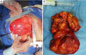 - Mani VR, Ofikwu G, Safavi A. Surgical resection of a giant primary liposarcoma of the anterior mediastinum. J Surg Case Rep 2015;2015:rjv126. [Crossref] [PubMed]