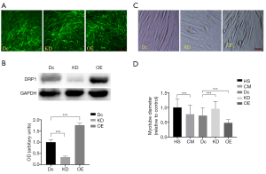 Conflicts of Interest: All authors have completed the ICMJE uniform disclosure form (available at https://dx.doi.org/10.21037/tcr-21-751). The authors declare that vectors with siRNAs targeting DRP1 and a negative control siRNA were obtained from GeneChem Inc. (Shanghai, China), and the processes of sequencing and analysis were carried out by GENEWIZ (Suzhou, China); there is no professional or other personal interest in services from Genechem, Shanghai, China and Genewiz, Suzhou, China that could be construed as influencing the position presented in the manuscript. The authors have no other conflicts of interest to declare.