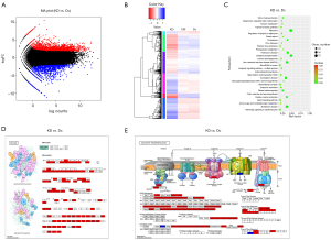 We selected samples from the KD, Dc, and CM groups to perform transcriptome sequencing analysis. The myotubes were harvested and dissolved in Trizol (Thermo Fisher Scientific, Waltham, MA, USA) treatment according to the manufacturer’s protocol to extract total RNA. After quantifying with NanoDrop (Thermo Fisher Scientific, Waltham, MA, USA) and qualifying with Agilent 2100 Bioanalyzer (Agilent Technologies, Palo Alto, CA, USA), the value of RNA integrity number (RIN), which reflects the quality of RNA, was guaranteed >7. One µg RNA was utilized for library preparation. The processes of sequencing and analysis were carried out by GENEWIZ (Suzhou, China), and sequencing was conducted on an Illumina HiSeq instrument (Illumina, San Diego, CA, USA). Raw data were processed by Trimmomatic (v0.30) to guarantee high quality. DESeq (v1.6.3) was used to analyze the differentially expressed genes between two groups (KD vs. Dc; KD vs. CM; Dc vs. CM), based on a model of negative binomial distribution. Enriched genes with a P value <0.05 were identified and assigned to the associated Gene Ontology (GO) terms. Clustering analysis was performed to classify the data by calculating its similarity. This process grouped genes exhibiting similar expression patterns and therefore recognized the function of unknown genes to deduce whether they act in the same metabolic process or pathway. The Kyoto Encyclopedia of Genes and Genomes (KEGG) is a collection of databases dealing with genomes, biological pathways, diseases, drugs, and chemical substances (http://en.wikipedia.org/wiki/KEGG). We used in-house scripts to enrich the significant differentially expressed genes in the KEGG pathways.