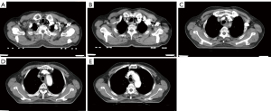 The clinical data of 74 patients with thoracic esophageal cancer admitted to the Dazu District People’s Hospital in Chonqing, China, from December 2019 to December 2020 were collected. Inclusion criteria were that patients had: (I) accurate pathological results as obtained by biopsy or surgery, (II) complete clinical data, (III) no other co-existing benign or malignant diseases, and (IV) never received radiotherapy or chemotherapy. Exclusion criteria for patients were: (I) recent use of hormone drugs and/or immune system regulators, (II) CT examination contraindications, (III) severe cognitive and communication impairment, and (IV) secondary recurrence.