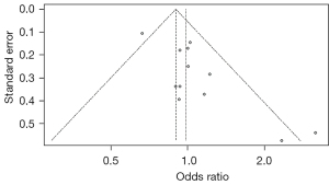 A funnel plot was used to evaluate the publication bias of the included studies. The funnel plot was asymmetric on both sides, which indicated the existence of publication bias (Figures 9,10). Egger tests (P<0.05) also showed that there was a possibility of publication bias in this study. We used the trim and filling method to assess the impact of publication bias on this article. Seven additional studies were added to the trim and filling method and the results were consistent with this article. It was proved that although publication bias affected this study, the results were still robust.