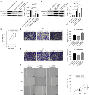 Recent a study has clarified the role of ACER2 in the regulation of cellular ceramide hydrolysis. It has been observed that ACER2 positively regulates the expression of SMPDL3B, a known carcinogenic gene, at the mRNA level, and that SMPDL3B acts downstream of ACER2 (11). This suggests that SMPDL3B may serve as a downstream target of ACER2, holding importance in the progression of ovarian cancer. In our study, ACER2 knockdown led to a downregulation of SMPDL3B protein, while conversely, overexpression of SMPDL3B alleviated the inhibitory effects of ACER2 (Figure 6A; P<0.05). Furthermore, overexpression of ACER2 induced an upregulation of SMPDL3B protein expression, and interference with SMPDL3B resulted in a reduction of this upregulation (Figure 6B; P<0.01). The results of CCK-8, transwell and cell scratch assays showed that downregulation of ACER2 significantly inhibited cell proliferation, migration and invasion. And overexpression of SMPDL3B could counteract the inhibitory effect of ACER2 downregulation on these cellular processes (Figure 6C-6F; P<0.05). Overall, these findings suggest that ACER2 may have therapeutic potential as a target in ovarian cancer cases characterized by high SMPDL3B expression.