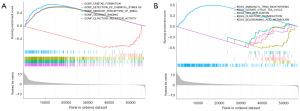 After separating CRC patients into high- and low-AF117829.1 expression groups, we explored the Gene Ontology (GO) and the Kyoto Encyclopedia of Genes and Genomes (KEGG) pathway enrichment of AF117829.1. GSEA was performed using the clusterProfiler R package. The predefined gene sets “c5.go.v7.4.symbols.gmt” and “c2.cp.kegg.v7.4.symbols.gmt” were downloaded from the Molecular Signatures Database (MSigDB) (26).